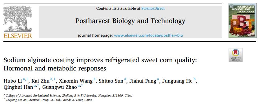 近日,学院种子科学与技术团队在《Postharvest Biology and Technology》(中科院一区TOP,IF=6.4)期刊上发表题为“Sodium alginate coating improves refrigerated sweet corn quality: Hormonal and metabolic responses”的研究论文,揭示了海藻酸钠涂层通过调控激素与代谢通路提升冷藏甜玉米品质的新机制,为鲜食玉米的采后保鲜提供了创新技术方案。甜玉米因口感清甜、营养丰富,成为广受欢迎的果蔬型作物,但其采后呼吸旺...